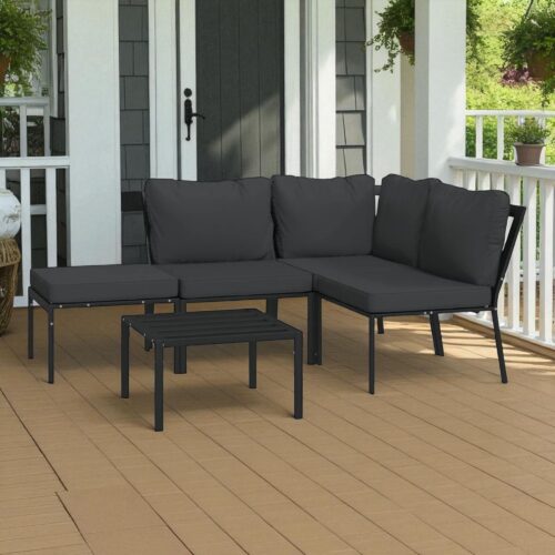 • Modern L-Shaped Stain Steel Outdoor Sofa Set with Coffee Table – Black