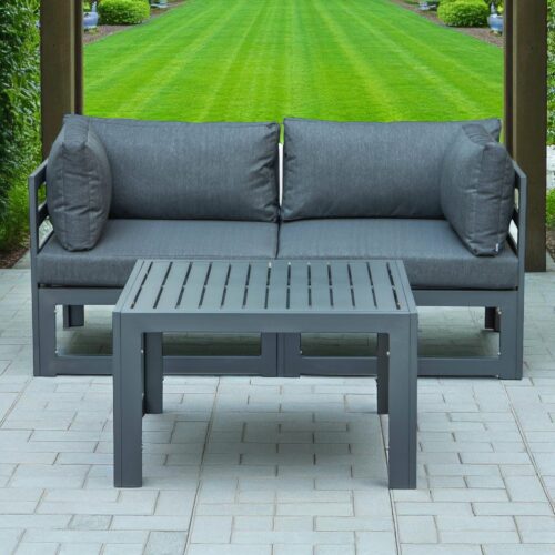 Modern L-Shaped Stain Steel Outdoor Sofa Set with Aciaca Coffee Table – Available in Gray & Black