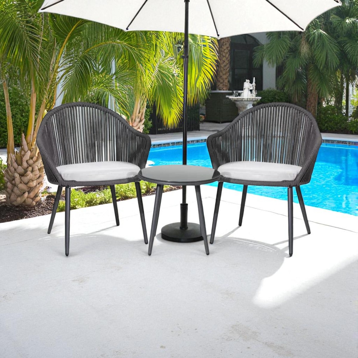 Whether placed on your garden, balcony, or poolside, this bistro set brings modern sophistication and a relaxing vibe to any outdoor space.