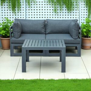 Outdoor Aluminum Patio Sofa Set with Coffee Table – 6 Color Options