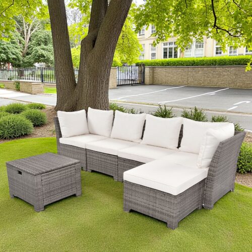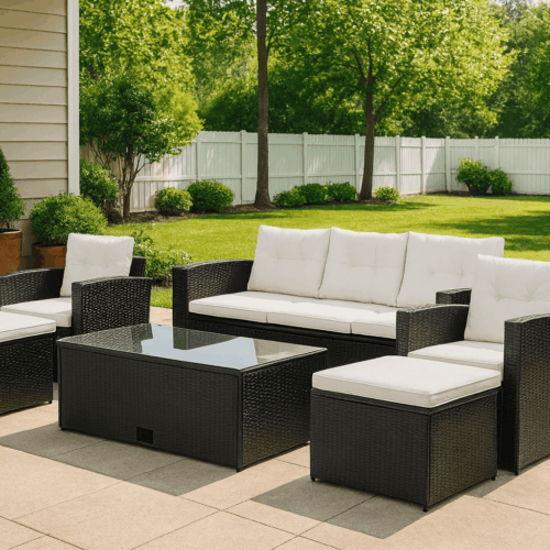 • Sale! Karina Black Stainless Steel PE Rattan Outdoor Sofa Set – 6-Piece Patio Furniture with Cushions